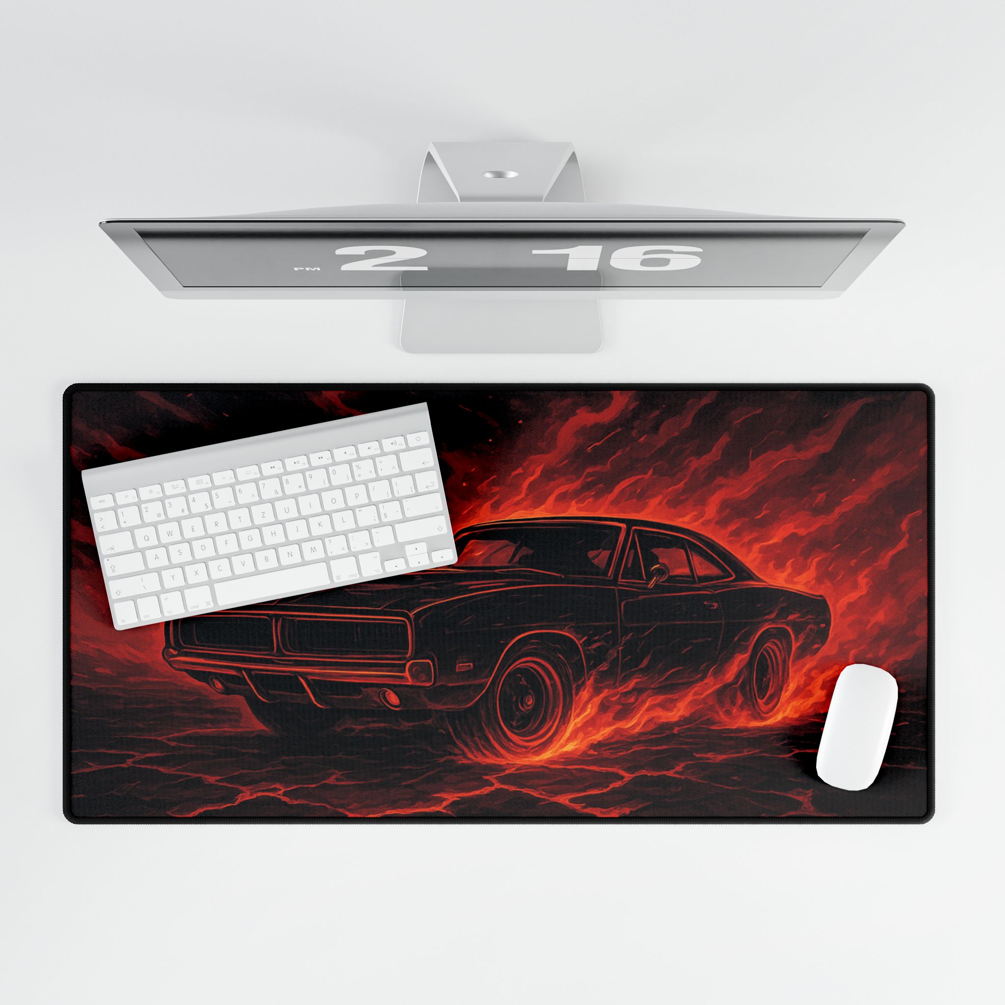 Fiery Charger Desk Mat – Perfect for Car Lovers, Gamers, or Office Decor, Customizable Mouse Pad, Unique Gift Idea