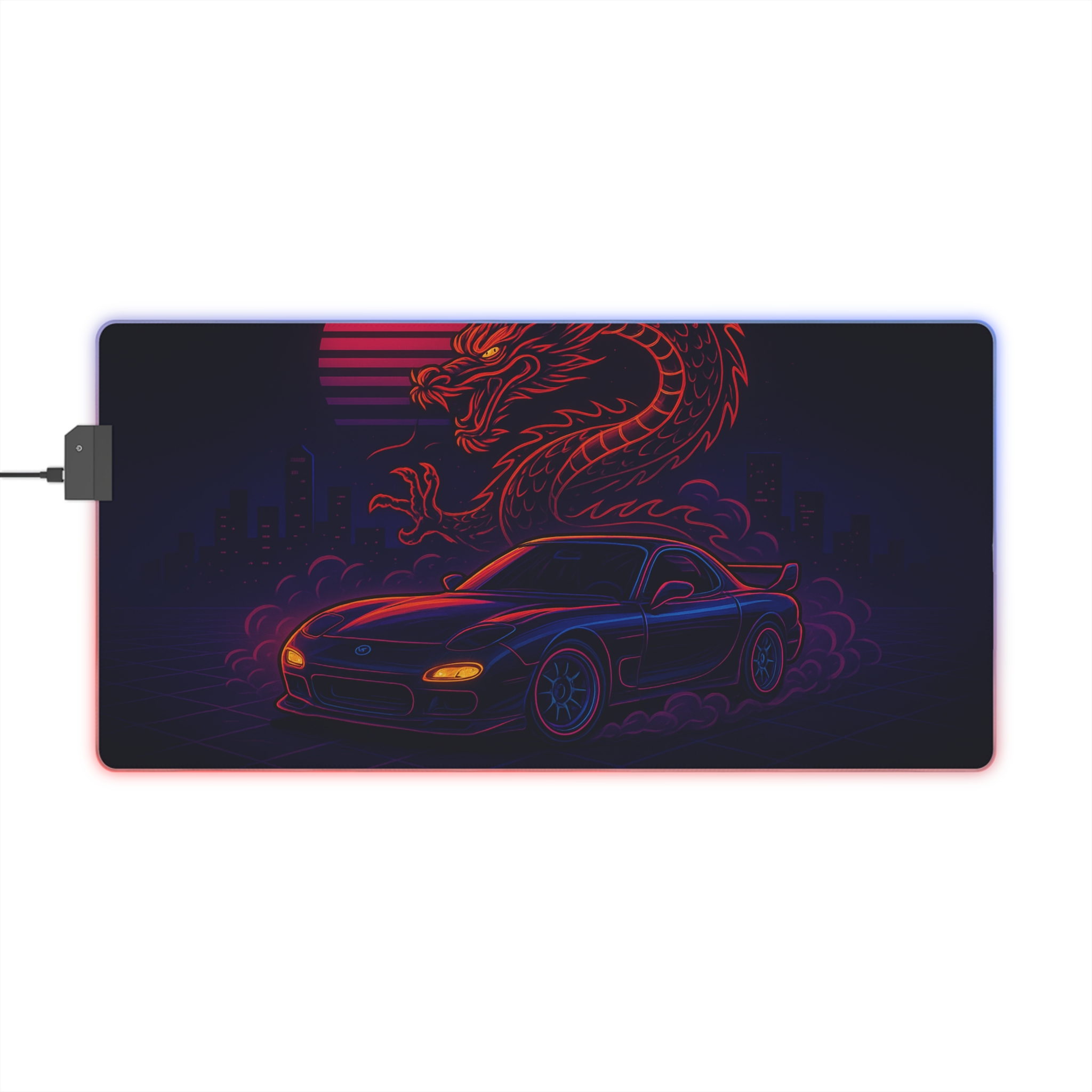 Gaming Mouse Pad with LED Lighting, Neon Car and Dragon Design, Desk Accessories, Gamer Gift, Home Office Decor, Computer Setup
