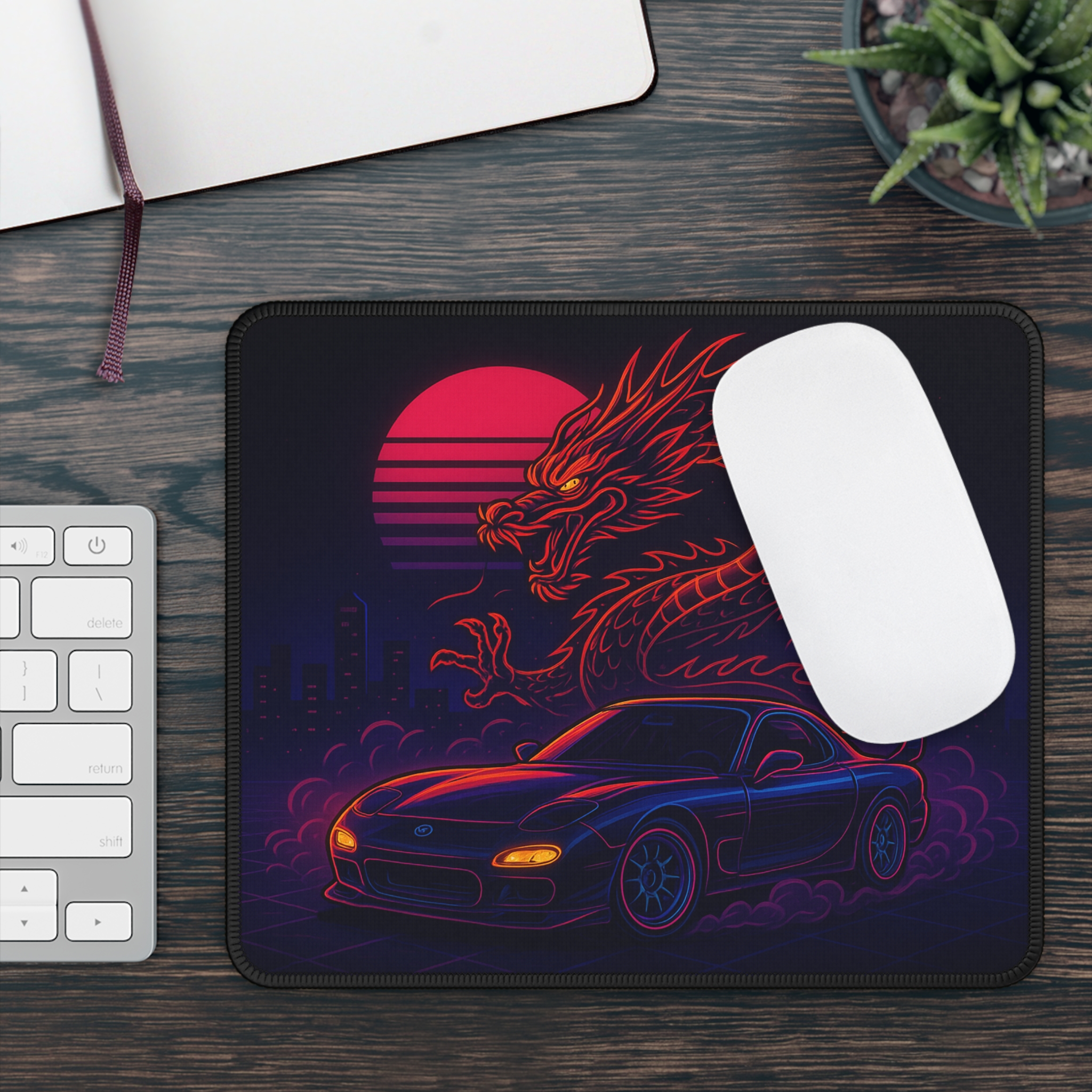 Vibrant Gaming Mouse Pad with Dragon and Car Design, PC Accessories, Gamer Gift, Desk Decor, Video Game Merchandise, Unique Gift Idea